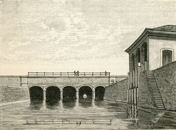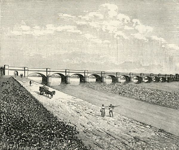 Giuseppe Barberis captured the Ponte-canale Della Dora Baltea in this print, a symbol of practical engineering that belies deeper currents of human aspiration and connectivity. Here, the bridge serves as a stark motif of human dominion over nature, a theme echoed throughout history. Consider the Roman aqueducts, or even the Tower of Babel, each a testament to humanity's ambition to reach beyond its earthly bounds. Yet, this striving is not without its shadows; the bridge, like the tower, can also symbolize hubris and the potential for overreach. The repetition of arches creates a visual rhythm, subtly evoking the cyclical nature of time and history. Note how the arch, initially a structural necessity, has been adopted as a symbolic motif in triumphal arches, portals, and even religious architecture, representing passage and transformation. This image resonates with a collective, perhaps subconscious, desire for progress, connecting one space to another, one idea to the next. As you contemplate this print, consider how symbols such as the bridge not only reflect our practical needs but also our deepest psychological longings for connection, progress, and legacy.