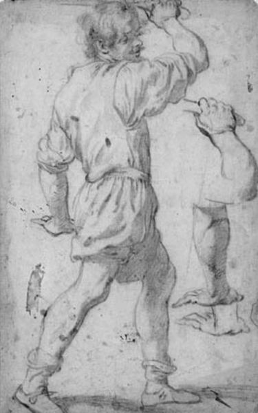 This drawing of Saint Albert is by Jusepe de Ribera, and was made sometime in the first half of the 17th century. Ribera was a leading painter of the Spanish Baroque, an era marked by religious and political conflict across Europe. Ribera spent most of his career in Italy where he absorbed the influence of Caravaggio and the Neapolitan school. He was known for his naturalistic style, and especially his interest in capturing human suffering. In ‘Saint Albert,’ Ribera depicts the saint cruelly hung upside down. The image invites us to meditate on themes of martyrdom and religious conviction. What strikes me is the raw emotion conveyed through Ribera's use of line. You can almost feel Saint Albert’s physical agony. Ribera avoids idealizing the saint. Instead, he presents a vulnerable figure, reflecting perhaps a wider acknowledgement of human suffering, during an era of war, plague and religious persecution.