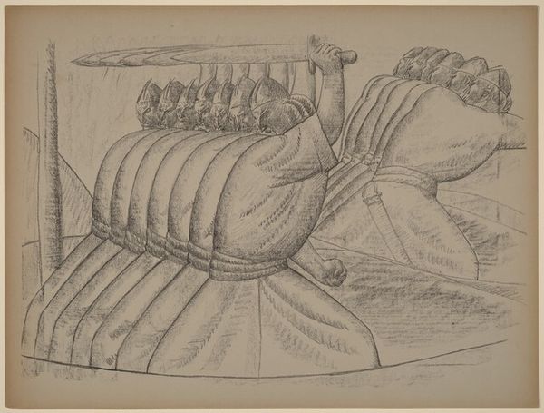 Editor: Here we have Julius Magnus-Petersen’s etching from 1851, "Christian III. Fra monumentet i Roskilde Domkirke," showing the recumbent effigy of King Christian III. The detail is just incredible, particularly the armor and the praying hands. What kind of stories do you think an image like this tells? Curator: This image is heavy with symbolism, isn't it? The recumbent effigy itself speaks of a transition, a passage from earthly power to, hopefully, eternal peace. But consider the armor, meticulously rendered. What does armor communicate to you beyond mere protection? Editor: Well, it speaks of power, of course, and status. But lying there like that, doesn’t it also suggest vulnerability? Curator: Exactly! The vulnerability of even the most powerful in the face of mortality. But go further. Think about the detail. The artist meticulously depicts each plate, each joint. What does that imply about the image’s intended audience and purpose? Editor: It suggests a desire for accuracy, for posterity, maybe even for idealization? It's not just about death, but about how Christian III is remembered. Curator: Precisely! The image attempts to solidify a specific memory and project it forward. The symbols aren’t merely decorative; they are carefully chosen to shape historical understanding. It makes you wonder what was important about Christian III for the artist and their intended audience, and what aspects they chose to emphasize through these visual cues. Editor: It's fascinating how much an image intended to memorialize someone can reveal about the values and priorities of a later era. Curator: Indeed. The image serves not only as a record of Christian III's monument but also as a window into the 19th-century's fascination with history, legacy, and the power of symbols.