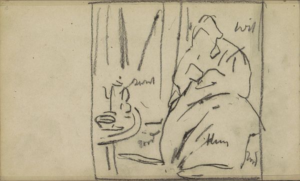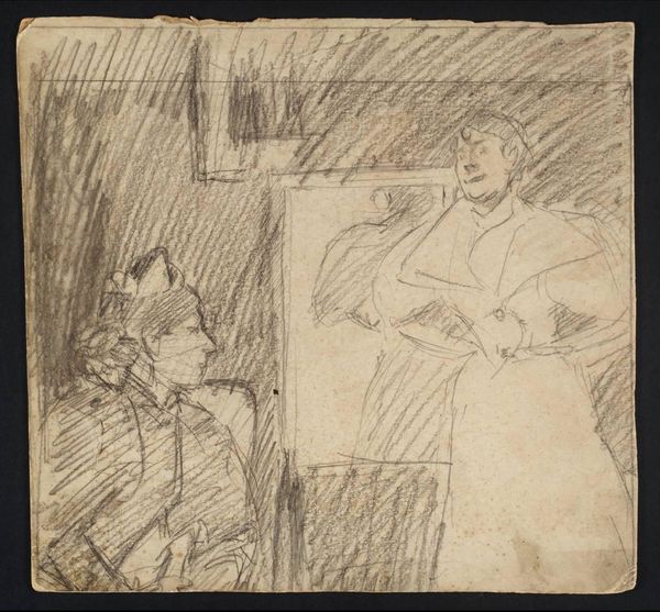 Editor: This is Charles Keene's "Drawing for 'Punch'", currently residing in the Tate. It looks like a simple sketch, maybe ink on paper, depicting a railway scene. The cross-hatching gives it a hurried, almost journalistic feel. What stands out to you? Curator: Keene’s work illuminates the material conditions of Victorian print culture. As a drawing intended for 'Punch', its value resides not in its aesthetic qualities alone, but in its reproductive potential, its capacity to be transformed into a commodity consumed by a mass audience. Editor: So, it's less about the artistic skill and more about its function in a larger system of production? Curator: Precisely. Consider the labor involved, the paper used, the printing process, and its ultimate distribution. These factors reveal the complex social and economic relationships underpinning its creation and consumption. Editor: That perspective really shifts my focus. It's fascinating to think about the unseen labor behind a simple drawing.