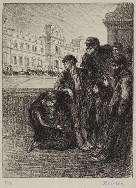 Théophile-Alexandre Steinlen’s “On Detrousse Au Coin Des Lois” was made using lithography, a printmaking technique that allows for a wide range of tonal variation. This particular printmaking process begins with a flat stone or metal plate. The artist draws an image on the surface with a greasy crayon. The stone is then treated with a chemical solution that fixes the drawing. Finally, the surface is dampened with water, which the greasy ink repels, and then rolled with an oil-based ink, which adheres only to the drawn image. The image is then transferred to paper. Steinlen’s lithograph captures a clandestine encounter, perhaps an illicit transaction. The medium itself mirrors this subject matter, as lithography allowed for the relatively quick and inexpensive production of images, making art accessible to a wider audience and a perfect medium for social commentary. With its capacity for detail and nuance, this lithograph invites us to consider the darker aspects of society, and the labor and politics behind it.