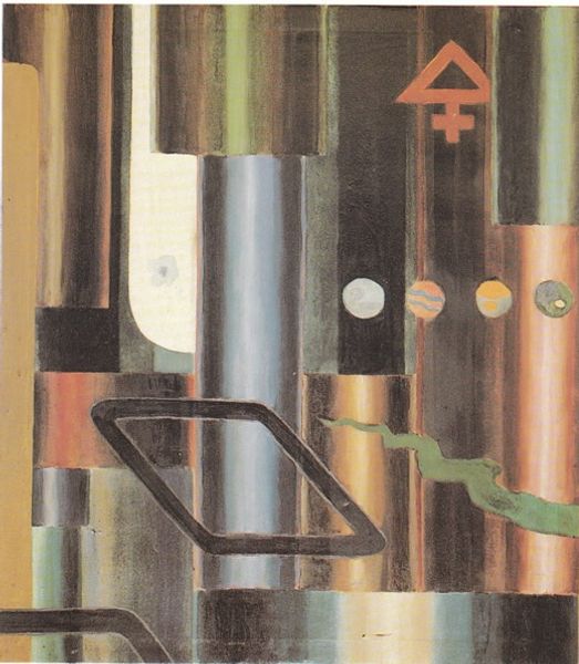 Curator: Lawren Harris painted this artwork, entitled "Abstract No. 7," in 1939, deploying acrylic paint. It immediately strikes me as an exercise in geometric form. What do you think? Editor: It's so cool, almost melancholic, like a blueprint for a utopian cityscape that was never quite built. I feel like I’m peering into a spectral city in the clouds. Curator: Considering its creation period, that resonance isn't accidental. Harris was deeply engaged with theosophy and the search for spiritual meaning within modern life. It speaks to his interest in using geometric forms to represent transcendental ideas. Look at the layering, the implied depth crafted through intersecting planes. Editor: I see it, those shapes stacked on top of each other create such tension! And the restrained palette— those blues and muted browns— somehow amplifies this sense of longing. You know, it makes me wonder about the labour involved. The patience to lay down those clean lines by hand... I find that impressive! Curator: Precisely. Think about the physical process itself, applying paint to canvas, how that act of production becomes almost meditative, mirroring the artist's pursuit of inner peace. And this echoes debates about abstraction, the removal of obvious manual labour traces compared to, say, impressionism. What labor remains? Harris asks us. Editor: It almost feels like the painting has another, unseen layer. I’m imagining this canvas with the subtle touch and precise process revealing its hidden dimension. Like an x-ray into the artist’s soul at the time. A moment frozen in pigment! Curator: In essence, by analyzing the material conditions and the formal choices that Lawren Harris made, "Abstract No. 7" is far more than pure formalism. It invites speculation regarding its socio-cultural underpinnings. Editor: Agreed. I started off lost in clouds, but thinking about your points grounds this abstract piece within something tangible, yet keeps my imagination spinning. What a trip!