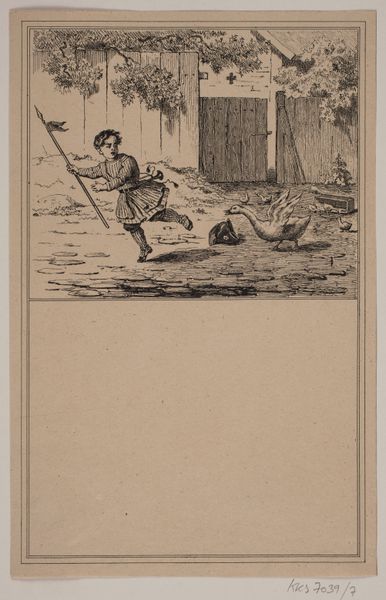 Adolph Kittendorff etched “The Dead Dog” as part of a series for children. Observe the fallen dog, its limbs splayed, a stark emblem of mortality in an otherwise serene courtyard. The motif of the dead animal has haunted art since antiquity. Think of the sacrificed animals in ancient Roman reliefs, or the still life paintings of the Dutch Golden Age, laden with symbolic weight. But here, the context shifts. Death intrudes not as a grand sacrifice, but as a common, desolate reality. The bent figure, a man in heavy cloak, leans on a cane. The curve of his posture echoes the dog's lifeless form, a visual rhyme connecting man and beast in the shared experience of earthly suffering. This empathy transcends time. We see echoes in depictions of mourning figures from diverse eras, each embodying a universal response to loss. Kittendorff touches a nerve deep within the collective psyche, reminding us of death's inevitable presence, a somber, cyclical rhythm that echoes through our shared cultural memory.