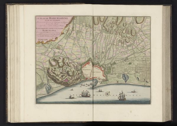 Editor: This is a print titled "Plattegrond van Antwerpen, ca. 1701-1713," created by Jacobus Deur. It dates from 1727-1729 and it is on display at the Rijksmuseum. It's like stepping back in time to examine a city block by block! The detail is incredible. What strikes you most about it? Curator: What a great choice! It feels a bit like peeking over someone's shoulder as they painstakingly documented their world. For me, it’s how Deur marries functionality with artistry. It’s more than just a map; it's a story of Antwerp at a pivotal point. You can see the fortifications, these almost theatrical star-shaped fortresses protecting the city. What do they whisper to you? Editor: They feel so...permanent. And also vulnerable, in a way? I guess, imagining attacks on the city. It's hard to believe this was all done by hand. Curator: Exactly! Remember, each line, each little building was deliberately etched. There’s a beauty in that level of care, don't you think? The texture of the aged paper almost adds to that, the knowledge of passing time... But if you really want a secret revealed... what is he leaving OUT? What biases may lurk behind the seemingly objective truth of this map? Editor: Oh wow, that's something to consider, a deliberate point of view that may change historical perspectives forever. This makes you wonder about the entire period. Thanks for sharing all this, I can’t wait to share with others now. Curator: Likewise! Happy travels...through time, that is!