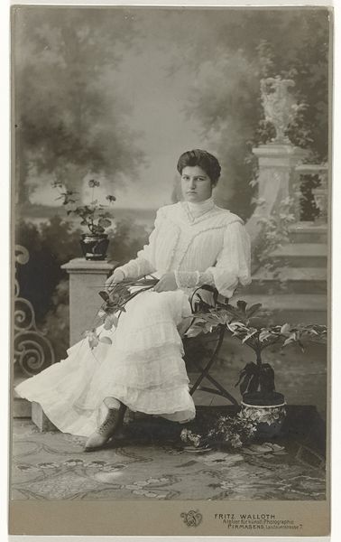 Editor: Here we see an intriguing photograph, simply titled "Untitled (seated woman)" by Martin Schweig. The woman's unusual arm covering and the basket of flowers give the image such a unique feel. What strikes you most about this piece? Curator: The focus on the woven basket, the soft draping fabric, and the woman's arm covering makes me think about the labour involved. Where did the materials come from? Who made these objects, and under what conditions? Editor: That's interesting. I hadn't considered that. Curator: It asks us to look beyond the surface and consider the often invisible networks of production and consumption that shape our world. What do you think about that? Editor: That adds a whole new layer to my understanding of the work. It’s more than just a portrait; it's about the story of these materials. Curator: Precisely. Examining the materiality helps us understand the social and economic context. Editor: Thanks, I will never look at photography the same way again.