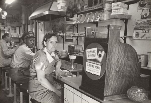 Editor: This is “Keeping Fit While Living in a Fallout Shelter…,” a black and white photograph by Larry Schreiber from November 1960. It looks like a model display, almost staged, for a domestic fallout shelter, and it gives off a strange mix of hopefulness and anxiety. What stands out to you? Curator: I see a potent example of the anxieties of the Cold War era manifesting in popular culture. This photo operates on several levels. It's part photojournalism documenting the very real public campaign to prepare for nuclear fallout. However, the scene also acts as a social commentary and can be viewed through the lens of social realism. Editor: Social realism? Curator: Exactly. It appropriates the aesthetics of a domestic ideal, and twists it into a space of potential confinement, even death. Notice the posters overhead—government endorsements packaged like advertisements. The photograph highlights how institutional forces sought to normalize what was essentially an unimaginable terror. The woman diligently keeping fit while surrounded by the bare necessities… it's both absurd and chilling. Don't you think? Editor: I see what you mean. There’s a disturbing contrast between the everyday activity, like exercising and storing canned goods, and the reality of nuclear threat. What do you make of the display construction, using what look like concrete blocks to build this space, do you think that is to remind people they can build their own shelters? Curator: Precisely, the construction of the exhibit acts almost as a public service announcement. What strikes me, ultimately, is how it underscores the public's complicated relationship with government messaging and control. It's a document and a critique, simultaneously reflecting and questioning the socio-political climate. Editor: This has really helped me see the different layers of meaning packed into this one image. It's definitely more than just a photograph. Curator: It really encapsulates the historical moment through a very unique visual and critical lens.