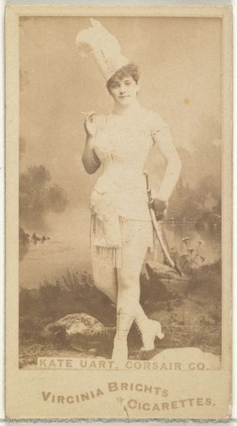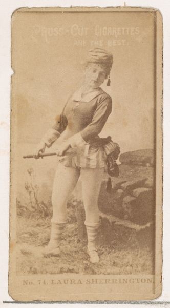 This tiny card showing ‘Miss Louison’ was produced by the American tobacco firm of William S. Kimball & Co. as part of a series of actresses. These cards, popular in the late 19th century, were inserted into cigarette packs as a marketing gimmick. But they also offer us a fascinating glimpse into the social and cultural values of the time. The depiction of actresses, like Miss Louison here, reveals much about the era's fascination with celebrity and the performing arts. Louison's exoticized costume, combined with the romantic backdrop, speaks to the broader cultural trends of Orientalism and the popular imagination of distant lands. The commodification of her image through mass production also reflects the growing influence of consumer culture. Historians can look to a variety of period sources – theatrical reviews, advertisements, and sociological studies – to get a better handle on the cultural meanings that this image would have carried.