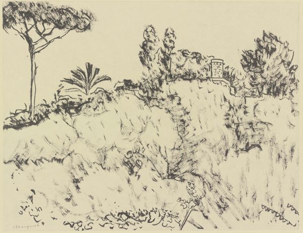 Curator: Welcome. We’re standing before "Cornfield at the forest," a drawing by Karl Peter Burnitz. Editor: It's a delicate, almost monochromatic landscape. There’s a subtle luminosity. My first thought is it has a melancholic atmosphere. Curator: Burnitz uses a combination of chalk, pastel and pencil on paper. Notice the layering, especially how he articulates depth with light and shadow. The texture invites a sense of quiet contemplation, don't you think? Editor: Definitely. This depiction resonates with broader narratives of land use and ownership during the 19th century. Consider the shift from communal lands to privatized property; Burnitz seems to capture this changing relationship with the environment and maybe reflects early environmental anxieties. The pastoral scenes often romanticize nature but it tends to erase the realities of labor and exploitation tied to it. Curator: Interesting. I’m focused on the technique, on the pure representation itself. See how the impressionistic touches, specifically the soft strokes to show how light hits the foliage—the way he captures movement. The eye is naturally drawn from the field upwards, into the denser tree line. The perspective leads your gaze across a subtly constructed visual journey. Editor: I can’t help but wonder who toiled in this field. This rendering of an idealized rural scene likely ignores or overshadows the lives of those working it. Who actually benefits from these seemingly pristine views of nature? There’s a history here—invisible labor embedded in the beauty. Curator: I understand, but there’s also beauty in form. Notice the rhythmic play of light in the corn stalks; how Burnitz utilizes negative space to accentuate shape and mass. Stripped of context, it's the successful rendering of depth on a flat plane that stands out for me. Editor: Well, that play of light, as you mentioned, also throws certain aspects into shadow—obscuring other elements of that social history. To truly see the beauty we have to address this too, recognize it is not innocent, or removed from these systems of power and privilege. Curator: Indeed. A dichotomy there—a powerful work. Editor: Ultimately a piece to reflect upon. Thank you for joining me.