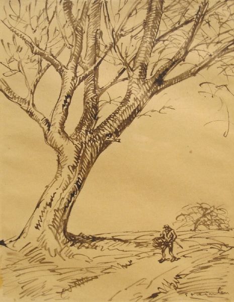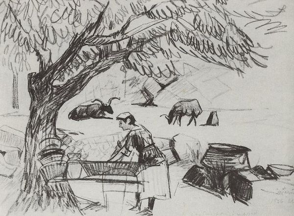 Pyotr Konchalovsky made this ink drawing titled ‘Spain. Kaldetes. Oliva.’ sometime in the first half of the 20th century. Konchalovsky's choice of subject – olive trees in the Spanish countryside – immediately places the work within a tradition of landscape art that, since the 19th century, had been closely associated with the rise of tourism and leisure. It's fascinating to consider what Spain represented to a Russian artist in this period. Was it a symbol of escape from the social realities of his homeland? Or did it offer an opportunity to engage with the modernist movements that flourished in the West? To understand the context of this work more fully, we might research the network of cultural exchange between Russia and Spain in the early 20th century and the history of Russian artists traveling to Spain. By exploring these avenues, we can better appreciate the social life of this artwork.