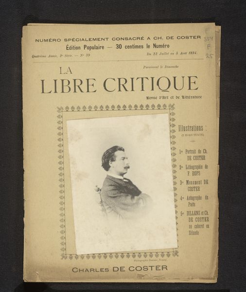 Curator: Look at this portrait of Constantin Meunier from before 1902, a photographic print created by the intriguing figure known only as Alexandre. Editor: Immediately, I sense a melancholic intensity in Meunier's gaze, and the close cropping magnifies this effect. Curator: Indeed. Alexandre's portrait, impressionistic in its feel, seems almost to probe Meunier's soul, especially given Meunier's social-realist focus as a painter and sculptor of industrial workers. What contrasts! Editor: It’s fascinating how the graphic quality emphasizes a tension between capturing likeness and the formal elements of line and shadow. The soft focus softens his features, creating an ethereal effect that pulls him from reality. There's this interplay between form and the man himself. Curator: I find that tension delicious. Meunier, in life, devoted himself to representing labor's harsh reality, but here, filtered through Alexandre's lens, he's… well, softer, perhaps more contemplative, caught not in the heat of creation but in a quiet, almost vulnerable moment. Editor: That impressionistic technique makes it less a documentation of Meunier’s features, and more about conveying an essence or feeling associated with him. It’s art commenting on art and life, layered with interpretation. Curator: It speaks volumes, doesn't it? This single image offers such a rich tapestry of meanings. Alexandre captured not just a face, but the spirit of an artist grappling with the world's realities. Editor: Yes, a fleeting glimpse into a creative mind that offers insights to the power of artistic exchange.