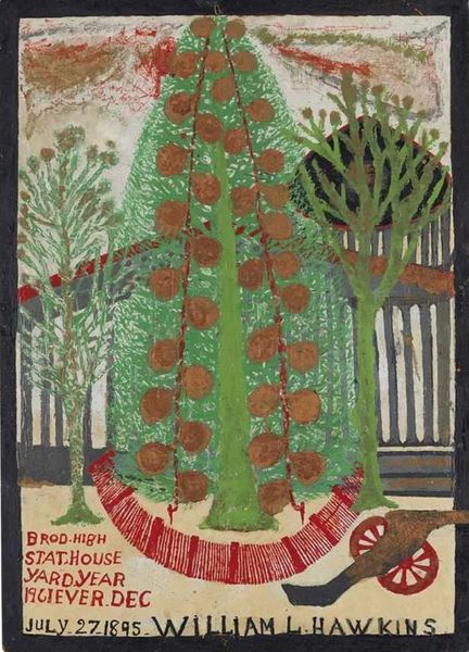 Curator: The first impression I get from this painting is one of dramatic, stylized foreboding. It’s quite striking. Editor: Absolutely. It looks like a vision of biblical catastrophe. This tempera painting depicts "La premi\u00e8re Trompette. La gr\u00eale de feu m\u00eal\u00e9e de sang. Apoc. VIII,” or “The first Trumpet. Hail of fire mixed with blood.” It's attributed to Facundus, and takes its subject from the Book of Revelation. Curator: Hail of fire mixed with blood, indeed! The imagery is intensely evocative, even without the title. Look at the angel, the stylized landscape. Do you see visual echoes of traditional symbolism here? Editor: Most certainly. The red used for the angel's robe and the trumpet blast can be seen as a signifier of passion, and even sacrifice within the established iconographic tradition. This combined with the fiery hail creates a clear warning. Notice the repetitive dots, suggesting destruction raining down? Curator: The almost geometric shapes of the mountains below amplify that sense of structured, unavoidable destiny. It’s all rendered in a manner reminiscent of Byzantine miniatures. What is most interesting is how even though it's clearly intended to instill fear, there's an undeniable sense of beauty, which says something about our cultural fascination with dramatic stories and archetypal themes like apocalypse and rebirth. Editor: A fitting point! Especially when considering this work likely functioned within a illuminated manuscript format meant for sustained viewing, it would definitely encourage meditation upon themes of human fate and morality. This calls forth interesting issues around didactic functions of religious imagery within social control too. Curator: Indeed, that contrast—destruction rendered in such deliberate, almost elegant, detail—keeps our eyes engaged. It makes one question both the power of belief and the power of art to visualize complex ideas. I found myself getting drawn in much more than I anticipated when first viewing it. Editor: It offers a visceral representation of anxiety and fear. A valuable record into what the medieval populace projected and feared, and of course, an enduring visual of profound destruction.