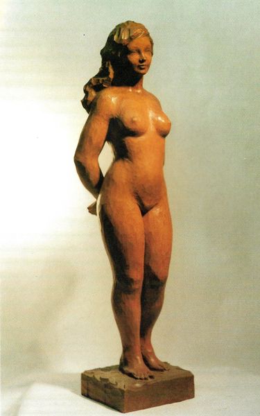 Jan van Eyck painted "Eve" as part of the Ghent Altarpiece, a masterpiece of the early 15th century. The work presents a life-size, full-length nude figure in oil. The verticality and slender form, set against a dark backdrop, immediately draw the eye, but it’s the almost tactile quality of her skin that holds our gaze. Van Eyck's meticulous detail is not merely decorative; it's structural. Consider the semiotics of the apple: more than a symbol of temptation, it represents a pivotal break in the narrative structure of Christianity. Her rounded belly contrasts with the prevalent artistic norms of his time. The painting’s formalism is also a philosophical statement, reflecting the emerging Renaissance interest in humanism and the close observation of nature. In Eve’s lifelike representation, Van Eyck destabilizes the medieval symbolic order, challenging us to reconsider the established meanings of beauty, sin, and redemption.