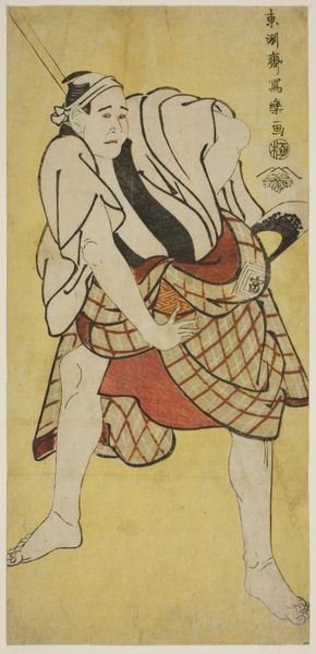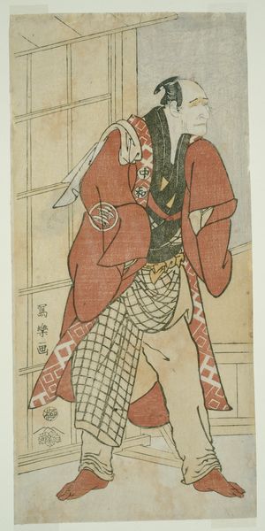 Tōshūsai Sharaku created this woodblock print, Daizo the Substitute, in Japan, sometime in the late 18th century. Sharaku emerged as an artist during the Kansei era, a period marked by both economic reform and strict censorship. Sharaku is renowned for his portraits of Kabuki actors. Here, we see Daizo, a substitute actor. Instead of presenting an idealized figure, Sharaku captures the actor's distinctive, perhaps even unflattering, features. Kabuki at the time was a vibrant, popular form of entertainment which often faced the disapproval of the ruling classes. It occupied a space outside the strict social norms. The actors themselves were often seen as marginal figures. In capturing Daizo with such stark realism, Sharaku challenges conventional representations of beauty and status. The print offers a glimpse into the world of Kabuki, with all its drama, emotion, and the complex social dynamics of the time.