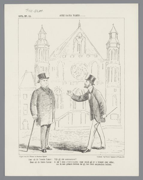 Johan Michaël Schmidt Crans created this print in 1868 to comment on the re-election of two liberal members of parliament. It's a scene of Dutch society where political status and identity are visually communicated through dress and posture. The print is from a time of significant political change in the Netherlands, with liberalism gaining ground, reflecting a shift in societal values towards more individual freedoms and less governmental control. But who really benefited? The three men in the foreground are well dressed, symbolic of the middle and upper classes. Their body language, especially that of the central figure, suggests a sense of confidence and entitlement. This contrasts sharply with those who were excluded from this new 'freedom,' the working class, women, and colonized people who had no political voice. The artist uses the print to question the true beneficiaries of liberal politics. The text translates to, "I knew that Rotterdam would remain liberal". The print suggests that liberalism, while advocating for freedom, may have primarily served the interests of a select group, reinforcing existing power structures. How do we ensure that progress and freedom are truly inclusive and not just a reshuffling of privilege?