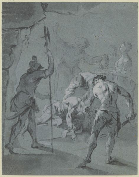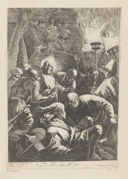 In this print, Francesco Giovane depicts Saint Andrew kneeling in prayer before his impending martyrdom. The X-shaped cross looms large, an ominous symbol representing the saint’s fate and recalling Christ’s sacrifice. Above, angels descend with a martyr’s crown, a visual promise of heavenly reward. The image is dense with symbols. The cross, of course, transcends its immediate historical context. We see it echoed in various forms throughout art history—from ancient cosmological diagrams to modern abstract compositions. The martyr's crown carried by the angels is also a motif found across cultures and religions. Think of laurel wreaths in antiquity, symbols of triumph and glory now repurposed to signify spiritual victory. Consider, too, the psychological weight of martyrdom. The willingness to sacrifice oneself for a belief is deeply ingrained in our collective consciousness, evoking both admiration and unease. This emotional power, this echo of sacrifice and redemption, continues to resonate, resurfacing in new forms and contexts, forever imprinted in the cultural memory.