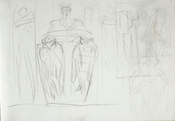 Editor: This is John Singer Sargent's "Study for Moses, Boston Public Library," a pencil sketch. It's intriguing to see the process behind the final mural. What can you tell me about it? Curator: Consider the materiality of this study. The graphite, the paper—tools of production employed to create a monumental public work. How does examining this preparatory sketch, a seemingly humble object, challenge our understanding of "high art" and the labor involved? Editor: That's a great point. I never really considered the physical effort required. Curator: Exactly. The sketch reveals the artist's process, the planning and revisions. What does this tell us about the relationship between the artist, his materials, and the final, grand narrative in the library? Editor: It makes the final mural feel more accessible, more human. Curator: Precisely. It decenters the myth of effortless genius and shows the reality of artistic production. We can better understand the consumption of art versus the means of its production.