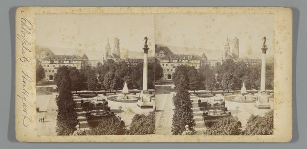 Curator: Here we have a gelatin silver print by Giorgio Sommer, taken sometime between 1860 and 1880. It’s titled "Gezicht op het atrium van het kartuizerklooster San Martino in Napels" which translates to "View of the atrium of the San Martino Charterhouse in Naples." Editor: It's immediately striking – the geometric precision and that imposing, almost oppressive architectural massing. It feels like a stage, doesn't it? An empty stage waiting for actors. Curator: Sommer’s composition definitely leans into neoclassical principles. Note how the architecture dominates the frame, asserting a rigid, ordered world through its repetitive arcades. It suggests a very particular socio-political order too. Editor: Absolutely. I’m drawn to thinking about the materiality of it. That stone! What quarries yielded it? What was the labour required to shape, transport, and assemble it with such imposing uniformity? The labour required would have shaped everything from the individual stones, to the cultural symbolism. Curator: It's interesting to consider that interplay. Sommer uses photography—a relatively new medium then—to capture this very established, historically dense space. This specific printing process offers sharp lines and gradations of tone to reveal subtle differences in texture and light. This enhances the imposing geometric clarity of the monastery. Editor: And think about photography itself! The chemistry, the light-sensitive materials, the processes used to make copies…these were also new methods of manufacture, ways of mass-producing images, and creating accessible representations of places that may not have been readily accessible. The print brings what would have been, in the 1800s, a very exotic location, available to others across Europe to collect and reflect on. Curator: That is insightful. The controlled composition of Sommer’s photograph, combined with the monumentality of the architecture, seems to evoke notions of power, knowledge, and the dominance of institutions. Editor: I agree. Thinking about what isn’t depicted, who is absent... that silence resonates too. To me, the work functions almost as an index, representing labour, material sources, and modes of production that were all critical to produce the architectural achievement presented here. Curator: It’s a compelling piece that showcases both the orderliness of Neoclassical architecture and the emergence of photographic techniques during that time. Editor: Definitely, considering this through a materials lens opens up even more historical, social and symbolic readings.