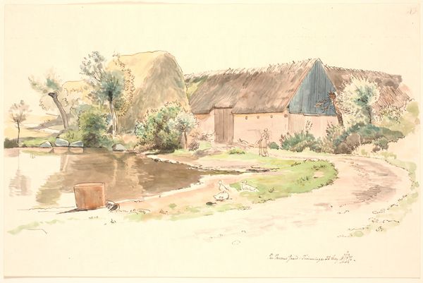 Editor: So, this watercolor, called *Roydon*, was completed by James McBey in 1930. It strikes me as such a peaceful scene, like a moment frozen in time. What do you see in this piece, from a historical perspective? Curator: From a socio-historical perspective, I see a romanticized view of rural life in England during a period of significant social and economic change. The interwar period witnessed increasing urbanization and industrialization. Paintings like this served to valorize and almost mourn a disappearing way of life. What do you make of McBey's artistic choices? Does his style contribute to this sense? Editor: Absolutely. The loose brushstrokes and soft colors create this dreamy, almost nostalgic feel. It reminds me of the Impressionists, idealizing scenes. Curator: Precisely. But beyond style, consider the political implications of such imagery. Who was the intended audience for these works? What values did they uphold, consciously or unconsciously? Were they responding to social anxiety through selective memory? Editor: So, these weren’t necessarily neutral depictions, but possibly endorsements of a certain social order? It’s like the painting is making a subtle statement. Curator: Indeed. Visual culture is never created in a vacuum. Ask yourself: Whose story is being told and, perhaps more importantly, whose stories are being omitted? What might this mean in a historical context? Editor: Wow, that's something I hadn't really considered. I will definitely view landscape art differently now, understanding it as not just aesthetic, but reflective of societal values and political undertones. Curator: Exactly. Looking at art through the lens of social and political context enriches our understanding, and this is what is exciting about historical analysis.