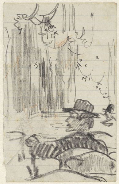 Curator: We are standing before "Cows in a Meadow by a Waterside," a pencil drawing by Anton Mauve, created sometime between 1848 and 1888. It's currently housed here at the Rijksmuseum. Editor: Immediately, I notice the almost ghostly quality. The thin pencil strokes give the composition an ephemeral feeling, like these cows might simply fade away if we look too closely. There is something haunting about such an ordinary scene. Curator: Interesting. From a materialist perspective, consider the humble pencil, a readily available tool even then. Mauve elevates this common medium to depict rural labor and the agricultural landscape that underpinned Dutch society. Editor: Absolutely. And what kind of labor is represented? These cows, subjects within a rural economy, quietly sustain an agricultural system often at their own expense. The lack of detail, however, keeps the social commentary somewhat muted, doesn't it? It's hard to read a clear politic beyond the serene depiction of pastoral life. Curator: I'm drawn to the repeated motif. Four depictions of the same subject spread across the frame. Think about it, in this period we're seeing nascent assembly-line work and increased rates of production throughout industrial Europe and the image, here, evokes repetitive and often exploitative practices, right? Editor: That's a compelling reading! It reframes the idyllic landscape within a harsher reality. Viewing these seemingly placid images as markers of labor conditions prompts an entirely different interpretation. And, further, there is labor in drawing itself--the means of production in visual form. It brings up the larger questions of art’s place within socio-economic structures. Curator: Right. While "Cows in a Meadow" doesn't overtly declare any specific agenda, a materialist lens urges us to examine the relationship between artist, artwork, subject, and the overarching network of production. What we see reflected is not a simple picture of cows, but of all the many lives—both human and non-human—sustained within agriculture. Editor: It enriches our experience and understanding when we look beneath a seeming calm and consider social implication in what might be otherwise construed as picturesque realism. The artistic process, itself, bears ethical weight. Curator: Indeed. It compels us to look at these pastoral scenes critically, revealing a depth of meaning often overlooked in more traditional analyses.