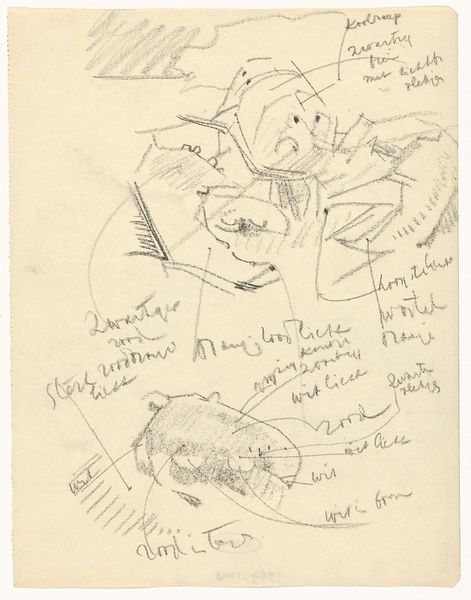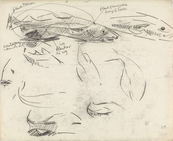 Gerrit Willem Dijsselhof made this study of gurnard fish, a preliminary work in pencil, for his prints, paintings, and textile designs. Dijsselhof was a Dutch artist working at the turn of the 20th century, when there was a heightened interest in the decorative arts. The details of the gurnard are carefully observed, but they're also clearly meant as components of an overall design. Dijsselhof was deeply involved with the Dutch Arts and Crafts movement, which rejected industrial manufacturing in favor of handmade goods. These were seen as a form of social reform, in contrast to what they viewed as the dehumanizing effects of mass production. To better understand Dijsselhof’s work, one might look into publications like 'The Studio,' which promoted the Arts and Crafts aesthetic, or the manifestos of socialist art critics of the period. With further research, we can see how Dijsselhof's art reflects the social and institutional contexts of his time.