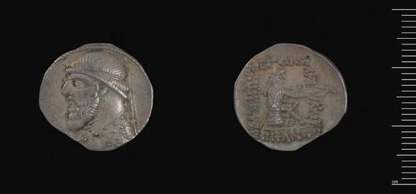 Curator: We're looking at a Denarius crafted in Rome by Cn. Cornelius Cn.f. Blasio. Its formal design is immediately striking. Editor: It feels cold, doesn't it? Distant. Like gazing into a history book. Curator: Indeed. Note how the coin presents a stark dichotomy. On one side, a stoic female head is rendered in profile. The flip side shows figures engaged in what appears to be a formal exchange. Editor: The figures seem rigid, almost like they're posing. There's little to no warmth or sense of spontaneity in their interaction. Curator: Precisely. Each element adheres to a strict representational code that prioritizes clarity of form and symbolism over individual expression. The composition exudes order. Editor: Perhaps that rigidity is part of its power, though. It's a window into a mindset, a world concerned with order, power, and legacy. Curator: An excellent point. The coin's materiality, its weight, contributes to a sense of permanence, a claim to enduring value. Editor: It makes me wonder about the hands it passed through, the stories it could tell. Curator: A tangible, if silent, witness to history. Editor: Absolutely, I find myself wanting to know more.