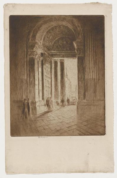 David Young Cameron made this print, Cluny, using etching, a process of revealing an image. The surface has this incredible, almost velvety quality, achieved through layers of tiny, deliberate marks. Look closely, and you’ll notice the ornate archway, framing a glimpse into a shadowed space. The light catches the stone, giving it a tangible presence. It's all about texture here, the rough-hewn stone versus the smooth darkness beyond. The contrast is so suggestive. That dark space beyond the arch isn't just a void; it’s full of potential, a stage for our imaginations. I think of Piranesi, who explored the themes of light and dark and architectural space, creating images which invite introspection and contemplation. Like artmaking itself, this print is about suggestion, implication, and, ultimately, the stories we tell ourselves.
