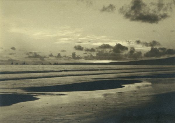 This photograph was made by Nasreen Mohamedi, but the date is unknown. Look at these lines, so gently placed! It’s almost as though she caressed the paper with light. The whole image is bathed in a sepia tone, giving it a timeless quality, like an old memory. The texture is subtle, almost imperceptible, but there's a clear sense of depth in the way the lines recede into the distance. The meeting of land and water is especially beautiful. Imagine Mohamedi carefully considering each line, each mark, as she built up this image. There’s a sense of both precision and playfulness, a balance between control and chance. It’s like she’s inviting us to slow down, to take a breath, and to really see the world around us. Like Agnes Martin's drawings, it reminds us to look for the extraordinary in the ordinary. These pictures don't tell us what to see, but instead invite us to look with care.