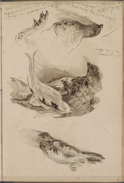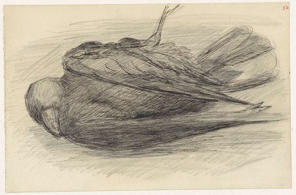 Jean Bernard rendered this delicate drawing of a dead dove using pen and watercolor. The dove, a symbol of peace and purity, is here inverted in death. But consider: the dove has ancient roots, linked to Aphrodite and Venus, goddesses of love and rebirth. Across time, the dove appears in myriad forms, from Christian iconography representing the Holy Spirit to secular emblems of harmony. Yet, here, the lifeless bird evokes a stark contrast. Death, in this context, forces us to confront mortality and the ephemeral nature of beauty. The image, while still, stirs something primal within us, a subtle anxiety regarding the fragility of life, that resonates through cultural memory. Bernard’s drawing isn't merely a depiction of death; it is an echo that vibrates with layers of symbolism, continually evolving, reinventing itself across the ages.