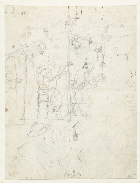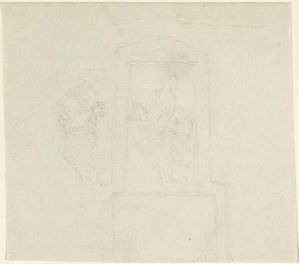 John Flaxman created this delicate pencil sketch titled 'Design for a Monument' during a period of significant social and political upheaval, including the French Revolution and the rise of Neoclassicism. Flaxman, who was deeply influenced by classical antiquity, often imbued his works with moral and emotional depth. This design reflects the era's fascination with commemorating individuals, but it also subtly engages with themes of mourning and memory. The figures flanking what appears to be a tomb or memorial might represent mourners or allegorical figures. The drawing echoes the broader societal interest in commemorating public figures and events, while also reflecting personal experiences of loss and remembrance. Consider how Flaxman navigates the tension between public duty and private grief, mirroring the complex emotional landscape of his time.