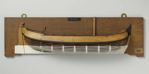 This “Half Model of a 3-Gun Schooner” is crafted from wood, offering a tactile glimpse into naval architecture. The model is bisected, revealing the ship's internal structure through a series of parallel lines that define its hull. The interplay of solid and void creates a compelling visual rhythm. The warm, polished wood of the ship's exterior contrasts sharply with the stark, geometric lines that delineate the interior. These lines are not merely decorative; they function as a kind of blueprint, exposing the underlying form that gives the ship its shape and stability. This work destabilizes traditional notions of representation, by presenting both the exterior and a cross-sectional view simultaneously. It invites us to consider the relationship between surface and structure, between what is seen and what is known. The form challenges us to look beyond the surface and engage with the underlying principles that shape our world.