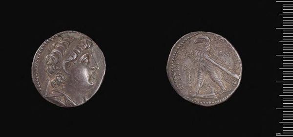 Editor: Here we have a Tetradrachm of Antiochos IX Kyzikenos of Syria. It’s a coin, so silver, and shows a profile of Antiochos on one side. What stands out to you about it? Curator: I’m struck by how this object, made from a specific material under particular labor conditions, served as a tool of economic and social power. How did its production and circulation reflect the social structure of the time? Editor: That's interesting. So the coin's value isn't just monetary but also a reflection of the society that produced it? Curator: Precisely. Consider the source of the silver, the artisans who crafted the die, and how its distribution impacted trade and the everyday lives of people. What does that labor tell us? Editor: I hadn't considered it that way before, thinking about the means of production. Thanks for pointing that out! Curator: It highlights how art and material culture are deeply intertwined with economic and social realities.