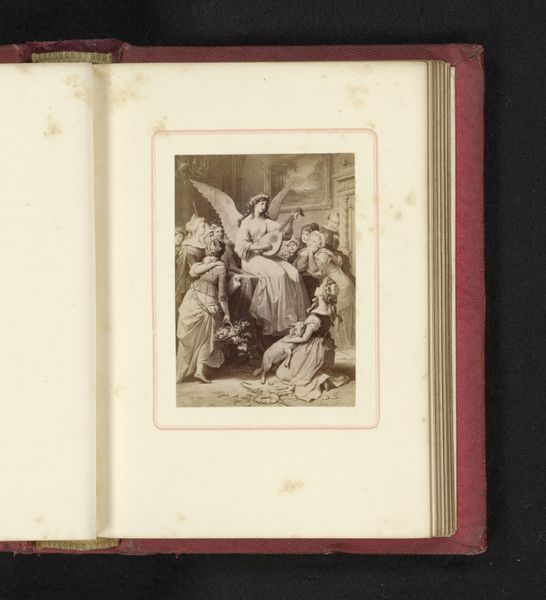 This is a photograph of a print of Jacques-Louis David's "Napoleon Crossing the Alps," made by an anonymous artist. The sepia tones and the photograph's small scale give the image a sense of distance and historical remove. The composition is dominated by the figure of Napoleon on horseback, rendered with dynamic lines that convey movement and energy. The horse rears up, creating a diagonal thrust across the frame, balanced by the flowing cape and determined gaze of Napoleon. The landscape below is sketched with minimal detail, enough to suggest the treacherous Alpine terrain. The photograph, as a reproduction, adds another layer to the image's semiotic complexity. It is not the original artwork but a representation of a representation. This raises questions about authenticity and the circulation of images in the modern era. The act of photographing the print further destabilizes the artwork's aura, transforming it into a commodity of reproducible media.