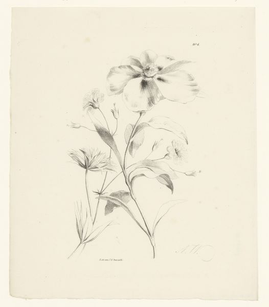 Anton Weiss made this drawing, titled Bloemen, in the first half of the 19th century. It's created with graphite on paper, a seemingly simple combination, yet it offers a window into the meticulous observation and skill of the artist. The success of the image hinges on Weiss’s mastery of graphite. Look closely, and you will see that the varying pressure of the pencil creates depth and volume, giving life to the flower's delicate petals and leaves. The choice of paper is also important; its texture interacts with the graphite, softening the lines and adding a subtle warmth to the drawing. In an era defined by industrialization, such hand-rendered drawings were highly valued as scientific documents, capturing the natural world with accuracy. This was painstaking work, requiring not only artistic talent but also patience and a deep understanding of botany. Weiss's Bloemen serves as a reminder of the labor-intensive processes that underpin our understanding of the natural world.