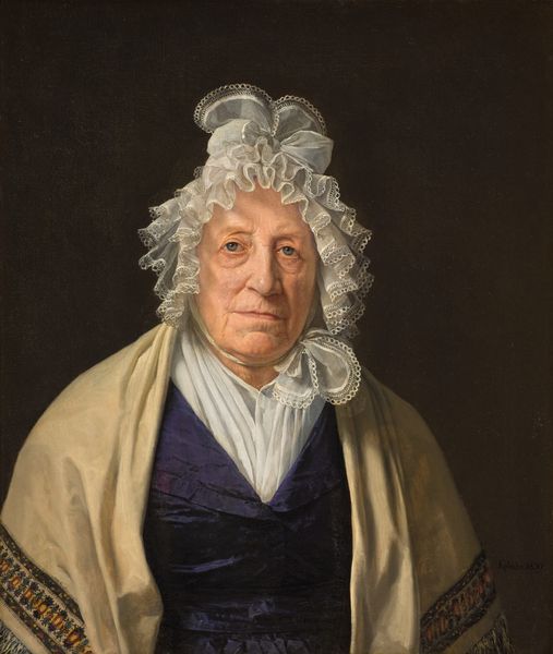 Editor: Here we have John Russell’s portrait of "Mrs. Robert Shurlock Sr. (Ann Manwaring)," created around 1801 using pastels. I’m struck by the subject’s careful attire and the presence of what seems to be a small jewelry box. What stands out to you in this piece? Curator: Beyond the surface image of a society woman, I see a study in the social construction of wealth through material display. The pastel medium itself—refined pigments painstakingly bound— speaks to access and privilege. Editor: So, you’re suggesting that the choice of pastels and the rendering of fine textiles are tied to the sitter's socioeconomic status? Curator: Precisely. Look at the lace on her cap, the silk shawl. Each thread, each carefully placed highlight of pastel, broadcasts an engagement with specific textile production and trade networks. We should also consider who the artist was catering to, who his patrons were, and how they defined their own social standing through material representation. Editor: It makes you think about labor conditions and colonial trade that funded this opulence... Curator: Exactly! How were these materials sourced? Who labored to create them? And how does the portrait, as an object, participate in this circuit of production and consumption? Even the jewelry box is a crucial clue pointing us to a system where value is often displaced from human effort and reassigned to precious objects. Editor: That gives a whole new dimension to simply observing a portrait. It pushes me to really consider the system propping it up! Curator: Indeed. By exploring materiality, we begin to dissect the very foundations upon which historical depictions rest, revealing complex networks of power, labor, and consumption.