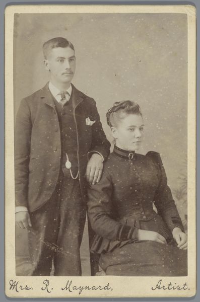 This is a photograph of a man and woman with a baby made by G. Lekegian & Co. The sepia tones lend an antique feel, like a memory fading at the edges. What I find fascinating is how the family is arranged, almost like a still life, with the baby perched precariously on a small table. The texture of the print is smooth, but you can almost feel the stiff fabric of their clothes. Look at the way the light catches the mother's dress, creating subtle patterns of shadow and shine. It’s as if the photographer is trying to capture not just their image, but also their essence. There's something about the formality of the pose that reminds me of early portrait photography, like the work of Nadar. Art is an ongoing conversation across time. There’s no right or wrong way to see it. It’s all about embracing ambiguity and letting your imagination wander.