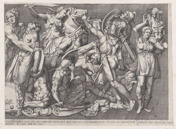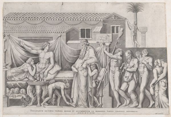 Editor: Here we have Giovanni Battista Piranesi's 1756 engraving, "The Roman Antiquities." It depicts a grand marble urn with scenes carved in relief. What strikes me is the sheer labor involved in not just creating the original urn, but also in Piranesi's meticulous rendering of it. What stands out to you? Curator: The reproduction of antiquity becomes, in Piranesi's hands, a commodity itself. Consider the print medium: multiple copies, easily disseminated, potentially influencing taste and stimulating demand for "antique" goods. Look at the obsessive detail – the rendering of every fissure and imperfection. Does this hyperrealism not speak to a fascination with materiality? The marble itself, quarried, carved, transported… it's all implicated. Editor: So, you're saying that the print itself participates in a kind of consumption, mimicking and amplifying the original object's journey through production and trade? Curator: Exactly! And by focusing our attention on the textures, the presumed "authenticity" of the urn is further emphasized by the labor put into Piranesi's print making. Do you notice how the various classical themes that seem to adorn the original become more ornamental through their copy? Editor: I do, that’s really interesting. It gives you pause about the value and labour of artwork at the time. It almost feels like this process reveals an act of mass consumption masked as classic antiquity. Curator: Indeed! The very act of documenting transforms the original, doesn't it? Something to consider moving forward.
