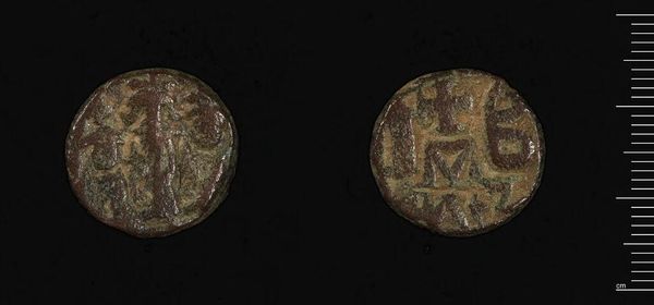 Editor: Here we have a bronze follis coin of Constantine I. It's small, and worn, but you can still make out the emperor's profile on one side and some kind of structure on the other. What can you tell us about this coin? Curator: This coin acts as a powerful artifact, revealing much about Constantine's reign. Beyond its function as currency, the imagery, likely the altar, reflects the state's evolving religious landscape. Consider how Constantine strategically employed symbols to solidify his power and negotiate complex social and religious transitions. How does this object speak to the intersection of power, religion, and identity in the late Roman Empire? Editor: That's a lot to think about! So, it's less about the coin itself and more about what it represents. Curator: Precisely. It's a lens through which we can examine the negotiations of identity and authority during a period of profound transformation.