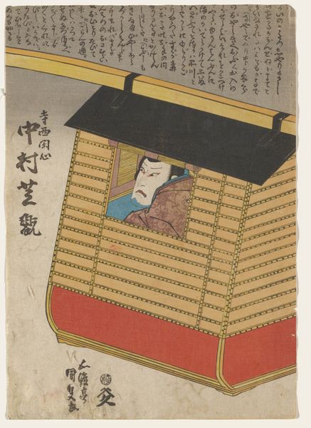 Curator: Here we have a woodblock print, a rather witty piece titled “Never Seen Before: True Picture of a Live Wild Tiger” created by Kawanabe Kyōsai around 1860. It’s part of the Ukiyo-e tradition and currently resides at the Metropolitan Museum of Art. Editor: Wow, it's… unsettling. I get this distinct sense of theatrical menace from it. The animal's posture is awkward but the expression is pure drama. The scale feels off, like a strange diorama of predator and… breakfast? Curator: You’re picking up on the playfulness! The title itself is a huge wink—more "stage tiger" than the real deal. Notice the rooster perched up there, completely unfazed, and another as tiger’s dinner? The inscription humorously suggests the artist's "realistic" observation is purely from imagination. Editor: Right, there's this layered commentary happening, almost a meta-narrative poking fun at both scientific accuracy and the exoticized image of the tiger in Edo-era Japan. The way Kyosai uses line—sharp, yet slightly cartoonish—adds to that feeling. Curator: Indeed. It subverts our expectations. The landscape elements, almost minimalist, enhance the stage-like setting. You almost expect the tiger to break out into a kabuki dance! Also the Western ink and pigments combined with traditional woodblock printing brings another layer to its story. Editor: So it's both an observation of and a commentary on representation itself? A real head-scratcher cloaked in this bold, graphic style. And despite the comical aspect, I do sense that it’s capturing some genuine fascination with the unknown, and a bit of underlying anxiety towards what might lie beyond the known world. Curator: Exactly. It holds up a mirror, not to nature, but to our perceptions. This print showcases that sometimes, it is not what is depicted, but why and how it is depicted that speaks volumes. Editor: So, perhaps the tiger isn’t really a tiger at all, but a reflection of our fears and fantasies, filtered through the lens of humor and artifice. Curator: Precisely. It's an early example of conceptual meme. Kyōsai's tiger ends up being both predator and performance artist.