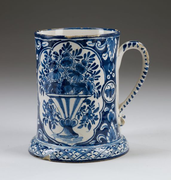 Editor: Here we have a ceramic mug by Daniel Greatbatch, created sometime between 1850 and 1890. It's currently held at the Art Institute of Chicago. The brown earthenware, combined with the relief carvings, gives it such a warm, almost rustic feel. What stories do you think this piece tells? Curator: Well, think about the social rituals surrounding mugs in the mid-19th century. Who would have used this? In what context? This wasn't mass-produced like many of our dishes today. It was likely a special object, potentially reflecting status, or even a political affiliation that needed broadcasting through everyday objects. The raised designs speak volumes, wouldn’t you agree? Editor: Yes, they seem incredibly detailed. Are there particular elements of those designs that would point to a specific interpretation? Curator: Consider the imagery: figures in relief, possibly depicting rural life. Who is represented, and who *isn't*? Does the artist depict only a certain type of labor or leisure? The seemingly bucolic scenes could mask inequalities and power dynamics of the time. Who had the leisure to drink from this fancy mug and whose labor made that possible? Editor: That's a fascinating way to look at it. I was so focused on the craftsmanship, but now I see how it reflects the complex social fabric of its time. Curator: Exactly! Objects like this mug are never just decorative; they're loaded with cultural and political meaning, waiting to be decoded. It’s exciting, isn't it? Editor: Absolutely. I’ll definitely see everyday objects in museums in a completely new light now! Thanks.
