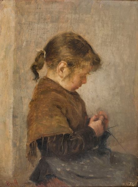 Silvestro Lega painted this intimate oil on cardboard sketch of a seated woman, sometime in the late 19th century. The rough strokes of paint are laid directly onto the support, a humble material compared to canvas, evoking a sense of immediacy. The subdued palette is typical of Lega, emphasizing earthy tones that suggest the rural setting and the woman's connection to the land. The application of paint reveals a directness, the artist's hand clearly evident in the varying textures. While seemingly simple, the work hints at the social context of the time. Lega often depicted scenes of everyday life, celebrating the dignity of ordinary people. This woman, perhaps a laborer or a peasant, is shown at rest, her posture conveying both weariness and resilience. By choosing such a subject and employing a raw, unpretentious style, Lega elevated the common experience to the realm of art, blurring the lines between high art and the realities of working-class life. It invites us to consider the value of labor, the beauty in simplicity, and the artistic merit found in the everyday.