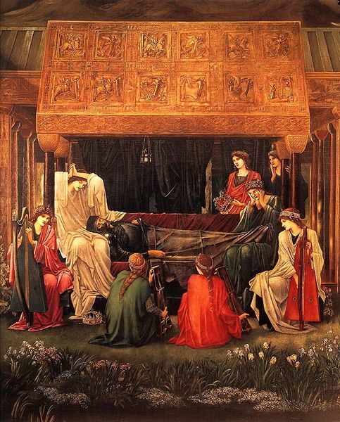 Editor: So, this is Jacques Daret's "Presentation in the Temple" from 1435, oil on panel. It’s held at the Petit Palais in Paris. It's a very formal composition, almost staged, and the figures feel very contained within the architectural space. How do you interpret this work, given its historical context? Curator: Well, this piece allows us to explore the intersection of religious narratives and the socio-political realities of 15th-century society. Daret’s representation of the Temple isn't just a backdrop; it’s a constructed space reflecting the power structures of the time. How do the figures' clothing and gestures contribute to a visual hierarchy, reinforcing these power dynamics? Editor: I see what you mean. The robes and the way certain figures are positioned closer to the Christ child definitely suggests a deliberate ranking of importance. It feels like more than just a biblical scene. Curator: Exactly. Think about who was commissioning this work. Daret was connected to the Burgundian court. So we must ask: how does this representation of religious authority align with the interests and self-image of the secular powers of the day? Editor: That connection to the Burgundian court gives the scene a whole new layer. So, it’s not just about the religious narrative, but also about projecting power and legitimizing authority? Curator: Precisely. And consider the role of women in this scene, particularly Mary. Is she presented as an active participant in her son’s destiny, or a more passive vessel? Editor: That's a great point. Her gaze seems downward, submissive even. I hadn't thought about that. It’s really fascinating to see how a biblical scene can reflect the complex social dynamics of the time. Curator: Indeed. And through examining those dynamics, we begin to understand how art participates in the construction of ideology and social control. It certainly offers us a deeper, more critical engagement with art history.