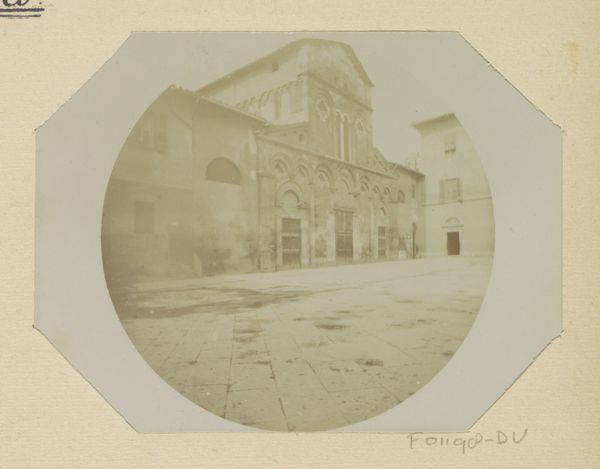 This photograph of the Palazzo dei Carovana in Pisa was created by Johanna Margaretha Piek. The monochromatic palette immediately catches your eye, establishing a muted, almost dreamlike atmosphere. The composition is dominated by the imposing facade of the Palazzo, its architectural details rendered with clarity within the soft tonal range. Piek's choice of sepia tones, combined with the octagonal frame, invokes a sense of history, almost as if the image is a relic of the past. The photograph captures the Palazzo not merely as a building but as a complex signifier of power, culture, and history. The lone figure standing in the square introduces a human element, yet also emphasizes the scale and grandeur of the Palazzo, creating a visual dialogue between the individual and the institution. Note how the rounded edges of the central image soften the severe lines of the architecture, inviting a sense of contemplation. This formal decision encourages us to see beyond the documentarian aspect, and consider the photograph as a site where history, representation, and individual experience converge.