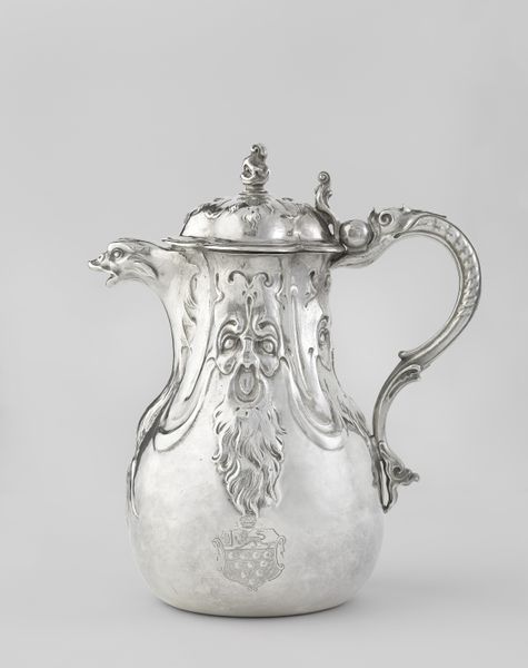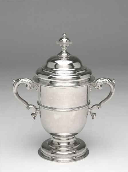Editor: Here we have "The Browne Cup" by John Burt, a gleaming silver vessel. It feels so formal, yet I wonder what stories it could tell. What do you see in this piece? Curator: I see a reflection of early American aspirations, its heft speaking of prosperity, the engraving hinting at lineage. Imagine the hands that raised it in toasts! Did they know the cup would outlive them all, becoming a quiet symbol of a bygone era? Editor: That's a lovely thought. The cup surviving, observing… Curator: Exactly! It’s like a silent, gleaming witness. What do you make of the weight? Editor: Its weight seems to reflect its preciousness, its value... both material and sentimental. I'll certainly think of it differently now. Curator: Wonderful! Art is a conversation across time, isn't it?