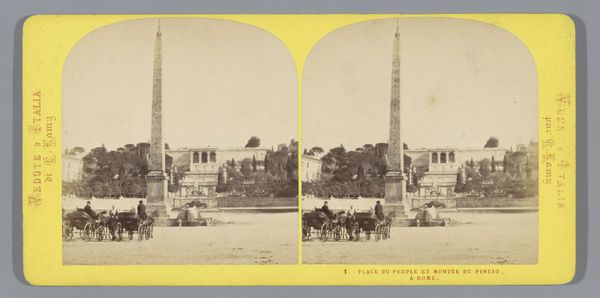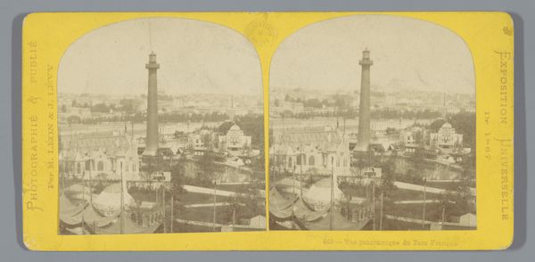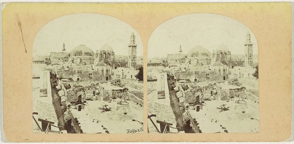 Editor: We are looking at "Gezicht op Istanboel," a collotype photograph created by Charles Gaudin between 1861 and 1870. It’s a cityscape, and honestly, my first impression is of how incredibly dense and layered the city looks, like a petrified ocean. What do you see when you look at this work? Curator: Well, my dear Editor, this image whispers stories, doesn’t it? It's more than just a view of Istanbul. Gaudin captures the romance of the Orient, that fantastical “Turquie” proclaimed on the card. This cityscape is less a record and more a construction of a European idea, a collotype dream. I wonder, does the monochromatic palette lend to this feeling, almost as if looking at an ancient memory? Editor: It does, in a way, feel distant. I'm curious about the choice to present it as a stereoscopic image. Was it intended for more than just documentation? Curator: Precisely! It offers the viewer a sort of “virtual” experience, doesn’t it? A chance to possess, at least optically, this exotic land. And it invites you, really, to consider your own position as the viewer, an outsider gazing in, experiencing it through a carefully curated perspective. Isn’t that fascinating? Editor: It’s like early virtual tourism, shaping perceptions from afar! It really shifts how I see the image - not just a cityscape, but an artifact of cultural exchange. Curator: Exactly. And in turn, it makes us question, doesn't it, how we still "capture" other cultures today, the perspectives we bring, and the stories *we* choose to tell. Food for thought, wouldn't you say? Editor: Definitely something I’ll be pondering. Thank you for the insight!