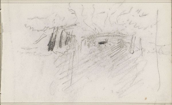 Editor: Anton Mauve's pencil sketch, "Cow in a Meadow," made sometime between 1848 and 1888...it feels almost unfinished, a fleeting impression of a rural scene. What do you see in this piece, especially considering the context of its creation? Curator: It's interesting you pick up on that feeling of incompleteness. Mauve was working during a time when the role of art was being intensely debated. Should art serve academic ideals, or should it capture the rapidly changing modern world? This sketch seems to be grappling with those questions. What do you think he might have been trying to capture by focusing on such an ordinary subject? Editor: Perhaps he was seeking to find beauty in the everyday, rejecting grand narratives for simple observation? Curator: Precisely! And notice the lack of idealization. The cow isn't majestic, the landscape isn't picturesque in the traditional sense. It reflects a shift toward realism, where the lives of ordinary people and their surroundings became worthy subjects of artistic scrutiny. Do you think this sketch challenges or reinforces the social hierarchy present in artistic traditions? Editor: It feels like a challenge. Before this period, farm animals may have only appeared as supporting elements in heroic landscapes or genre paintings. Mauve gives the cow center stage, imbuing it with a quiet dignity, thereby elevating the mundane aspects of rural life. Curator: Exactly! The art world increasingly saw itself as having a public role. Artists like Mauve shaped perceptions of rural life. It is interesting how artists shape or reflect the societal mood of their time. What's your biggest takeaway from understanding this? Editor: It makes me realize that even a simple sketch like this can be a powerful statement about the value of everyday life and the changing role of art in society.
