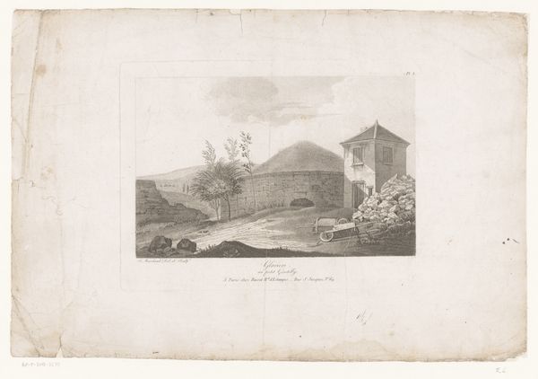 This landscape with a farm, or Landschap met boerderij, was etched by Paulus Lauters in the 19th century. He used a metal plate covered with a waxy ground. The design was then scratched into the ground, exposing the metal, and the plate submerged in acid. The acid bit into the exposed lines, creating an image that when inked, and pressed onto paper, reveals this scene. The marks Lauters made determined everything - the density of the lines building up the shadows, the delicacy defining the trees, the sky, the textures of the thatched roof, and even the field in the foreground. Notice how the hatching suggests the hard work of tilling the soil. Lauters gives us an insight into the labor-intensive process of farming. While seemingly a straightforward representation, the print embodies skilled handwork. Lauters transformed an industrial process into an intimate portrayal of rural life, bridging the gap between craft and fine art.
