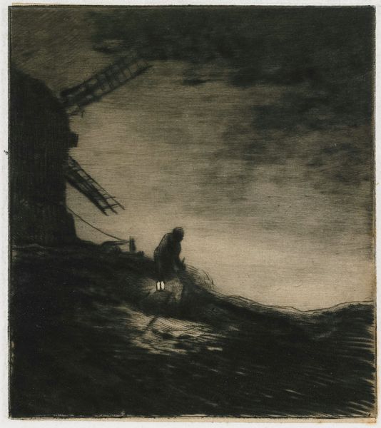 Fritz Eichenberg made "The Mystery of Earth" as an illustration, though I don't know when. It’s so graphic, in the sense of a print, made with these stark contrasts, and it really captures a mood. The texture is so key here; you can see it particularly in that band of sky, how he’s built it up with tiny marks, like the night sky is almost a swarm, some kind of vibrant accumulation. Then you’ve got this single figure on the road, with the church in the distance. It’s like a Pilgrim's Progress kind of image, but the marks in the sky almost seem to be bearing down, enveloping them. Eichenberg's clearly working in the tradition of other artists who did illustrations for books, like Lynd Ward, but there’s something about the darkness and intensity here that feels very personal. It captures a sense of searching, with no easy answers, which makes it so compelling.