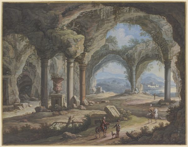 Marco Ricci painted this capriccio of Roman ruins in the 18th century, using gouache and watercolor over black chalk on paper. Dominating the scene are the crumbling arches and the equestrian statue, symbols of Roman imperial power now softened by time and decay. The equestrian statue, a motif echoing the power of the Caesars, reminds us of the Marcus Aurelius statue—a powerful, unbroken symbol of Roman authority. Yet here, the scene is one of peaceful decay. This mirrors the "Sic transit gloria mundi" theme, reminding us that worldly glory is fleeting. We see this sentiment echoed through art history, from medieval allegories to modern meditations on mortality. The presence of the ruins touches something primal within us. The crumbling stones evoke the passage of time and the transience of human endeavor. They become a stage for the drama of human existence, eliciting feelings of nostalgia, melancholy, and even a sense of liberation from the weight of history. This cyclical progression highlights how symbols resurface, evolve, and take on new meanings across epochs.