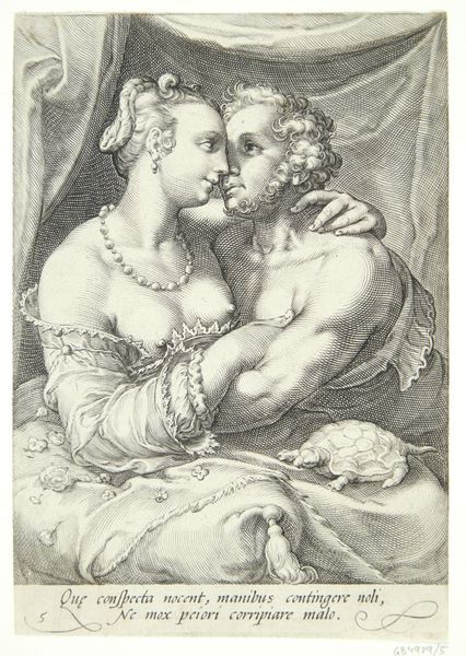 Jan Saenredam created this print, titled "Smell," using engraving techniques. The printmaking process has a fascinating relationship to labor. To create this image, the artist would have used a tool called a burin to carve lines into a copper plate. Ink is then applied to the plate and wiped away, remaining only in the incised lines. When paper is pressed against the plate, the image transfers, resulting in a reversed impression of the original design. Look closely, and you will appreciate the extraordinary amount of work that went into the making of this image. The sharp precision of the engraved lines gives the image a crisp, clean appearance, perfectly suited to the depiction of the wealthy couple and their surroundings. Consider how this labor-intensive process elevates the status of the image, transforming the everyday act of smelling into a scene of refined elegance. By understanding the materials, making, and context, we can appreciate the full meaning of the artwork.