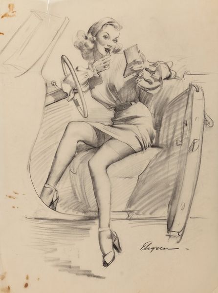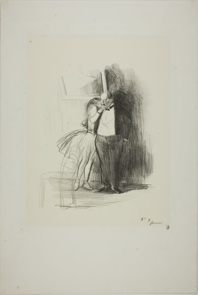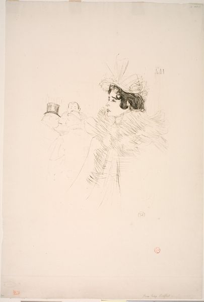 With swift strokes, Toulouse-Lautrec captured Anna Held on paper, an actress framed by the theater's raw backstage. Her elaborate costume, particularly the frilled bonnet, speaks of the performance's artifice, yet hints at something deeper. Consider the bonnet: in earlier times, elaborate headwear signified status and beauty, echoing through centuries of portraits. But here, it’s almost a mask, a symbol of the stage. Held’s pensive gesture—fingers to her chin—reveals a moment of vulnerability that resonates with Hamlet's introspective "To be or not to be." This mirroring of gestures across contexts, like the bonnet evolving from status symbol to theatrical mask, shows how deeply connected we are by visual echoes. It reminds us that images carry cultural memory, and our subconscious is stirred by these echoes.